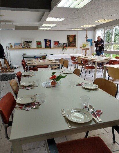 Alles is alweer opgeruimd en niet te vergeten: afgewassen. Het atelier ziet er zoals gewoonlijk, op zijn ateliers uit, en we kunnen er weer een tijdje tegen.