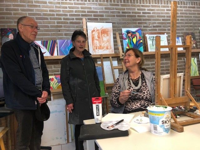 Er meldden zich drie belangstellende schilders om enthousiast met acrylverf aan het werk te gaan.
