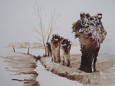 Een schetsje maken met potlood en vervolgens schilderen.